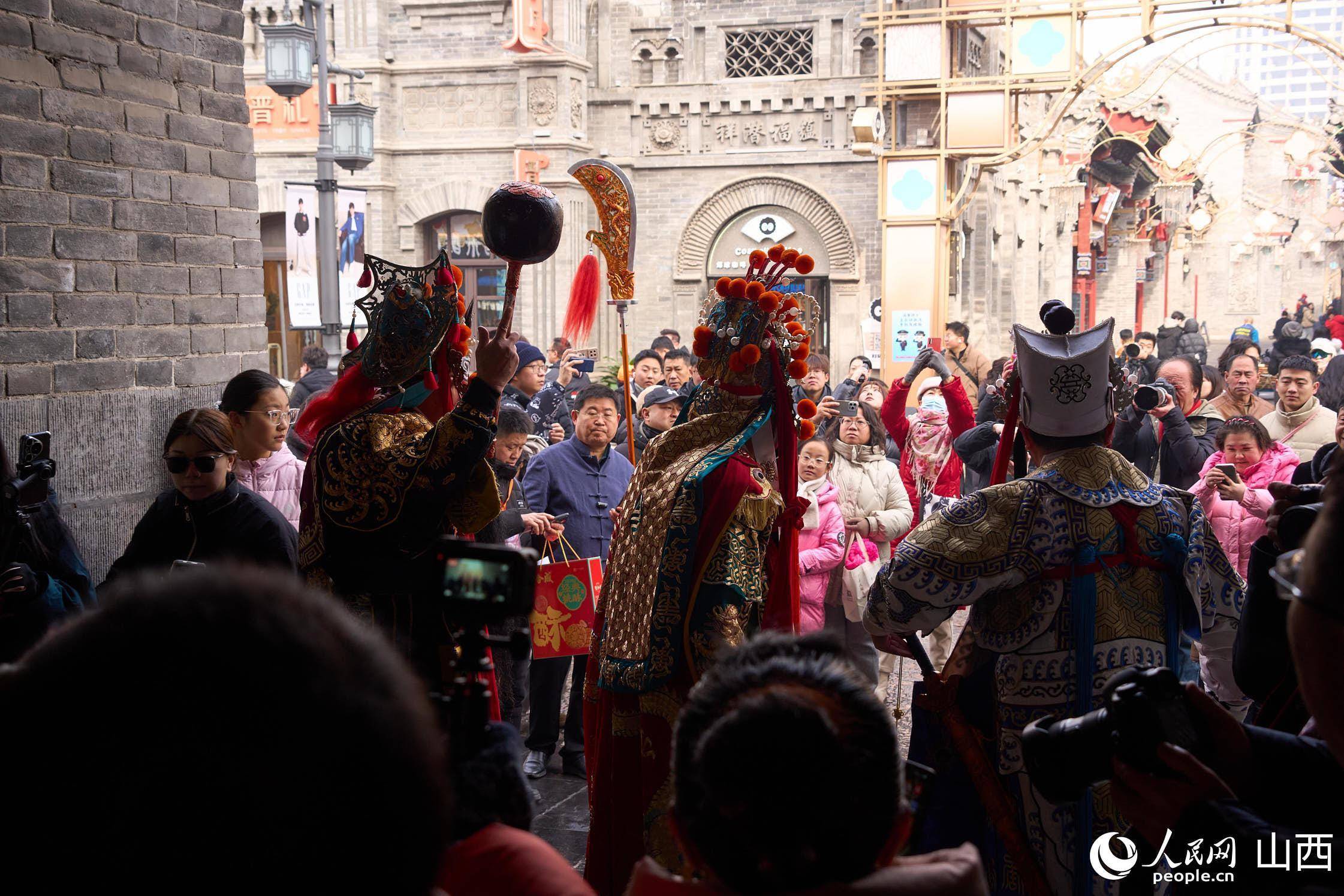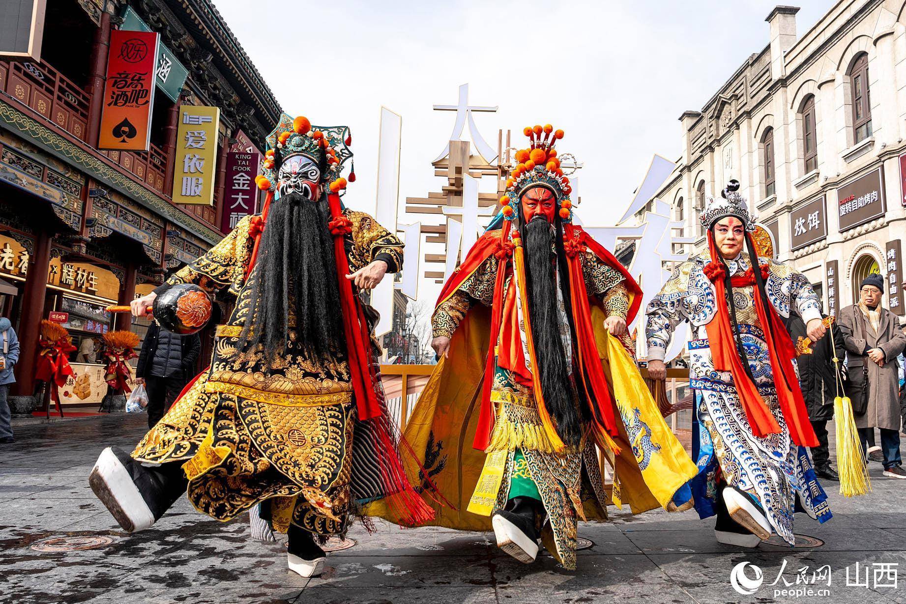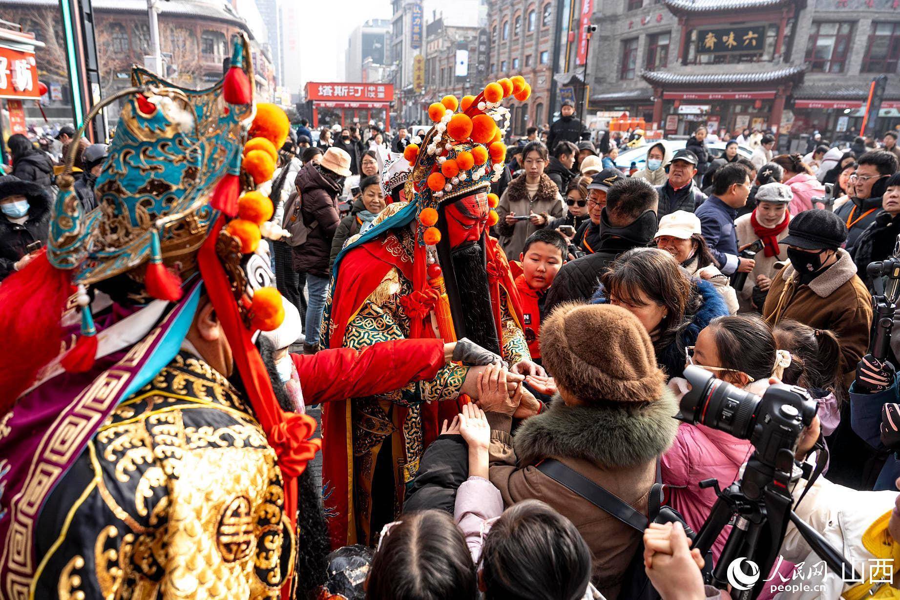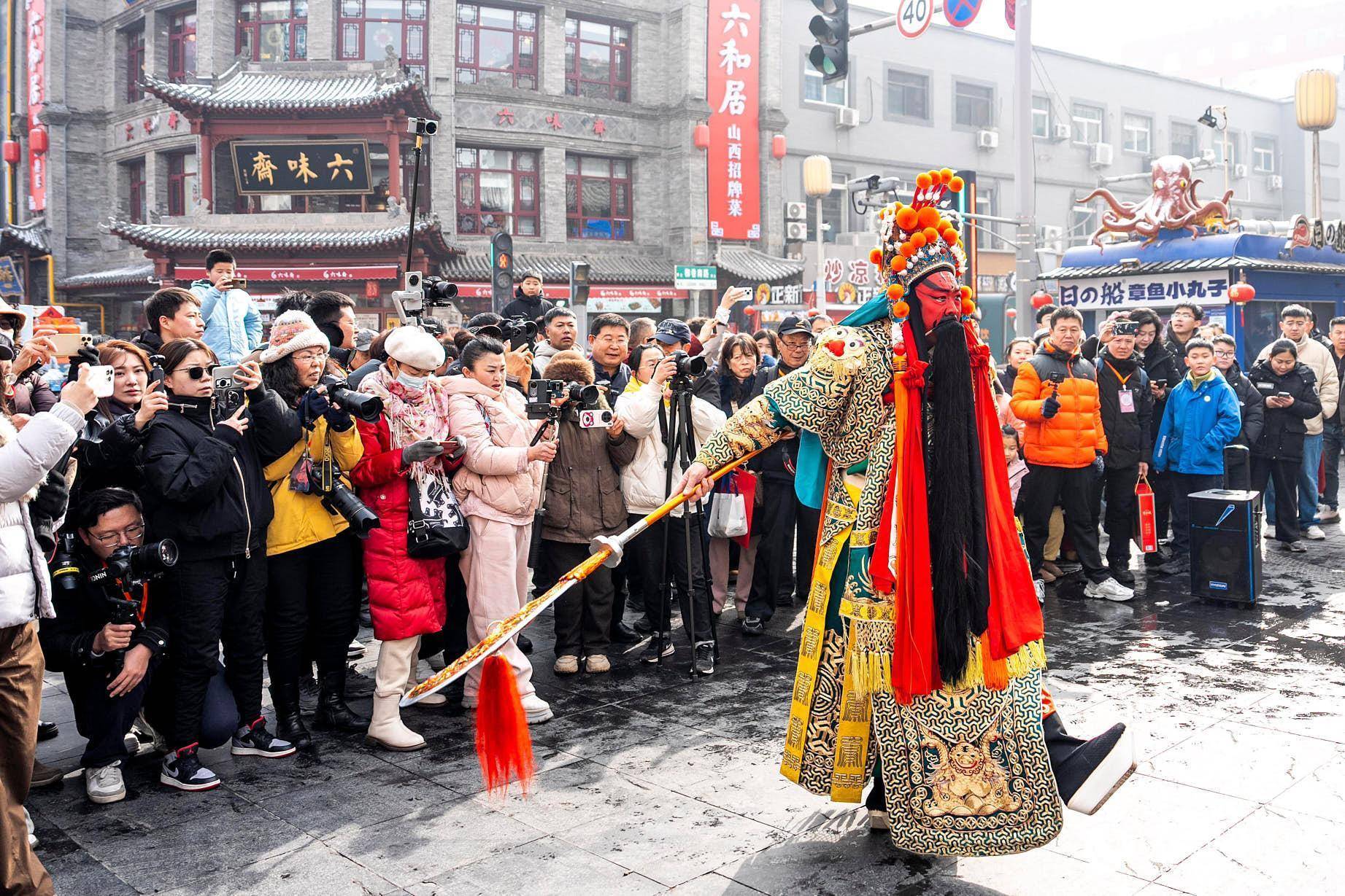 正值北方小年,在山西省太原市钟楼街,国家一级演员、晋剧表演艺术家武凌云以经典关羽造型亮相街头,吸引大量市民与游客驻足观看。武凌云面涂枣红、身披绿袍金甲,手持青龙偃月刀,扮相庄重,步伐稳健,行止间再现戏曲舞台上关羽的英武姿态。沿途市民纷纷举起手机拍摄,现场气氛热烈。
