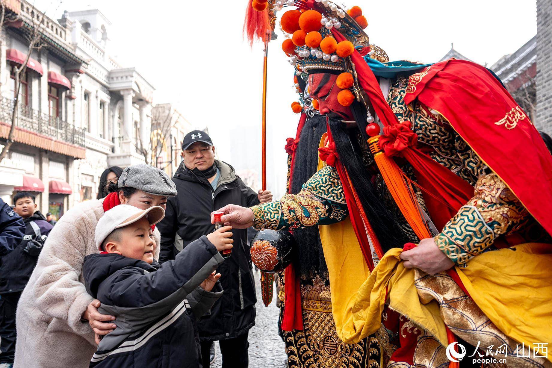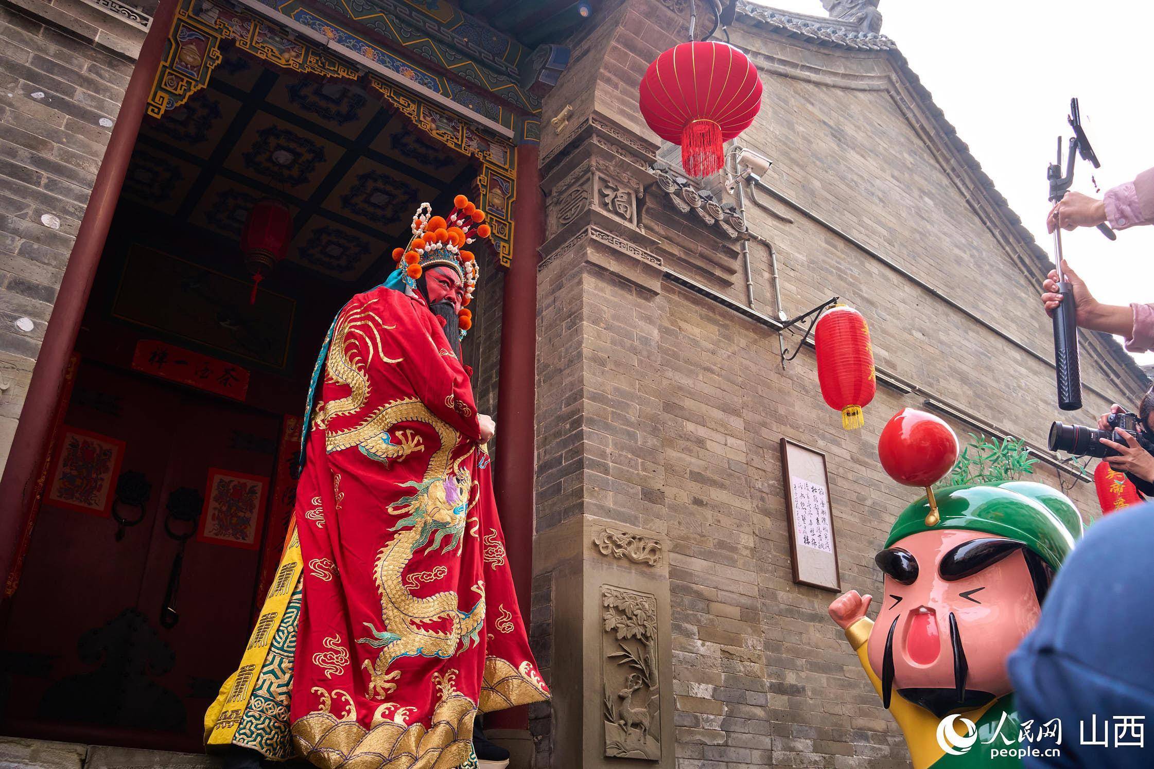 “关公”出现在关帝庙门口。